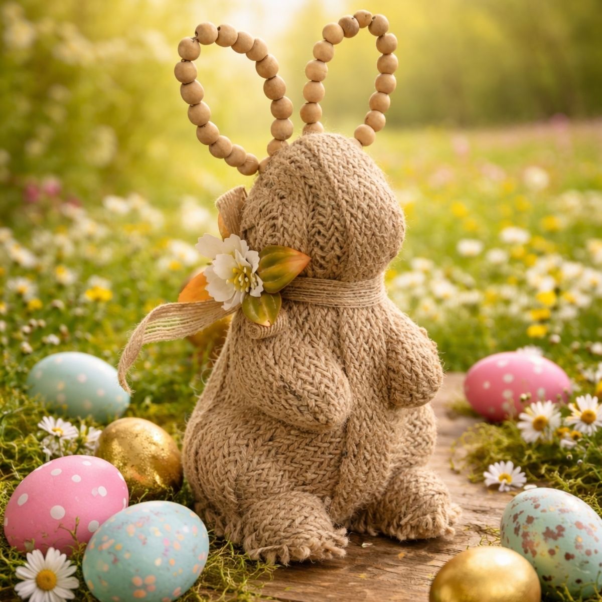 Com medidas de 22x13x11cm, esse coelho decorativo possui acabamento em material que imita palha, trazendo um toque natural à decoração. As orelhas com arame maleável, decoradas com miçangas, permitem ajustar a posição conforme a preferência, deixando o enfeite ainda mais versátil e personalizado para mesas, aparadores, vitrines e cenários temáticos.