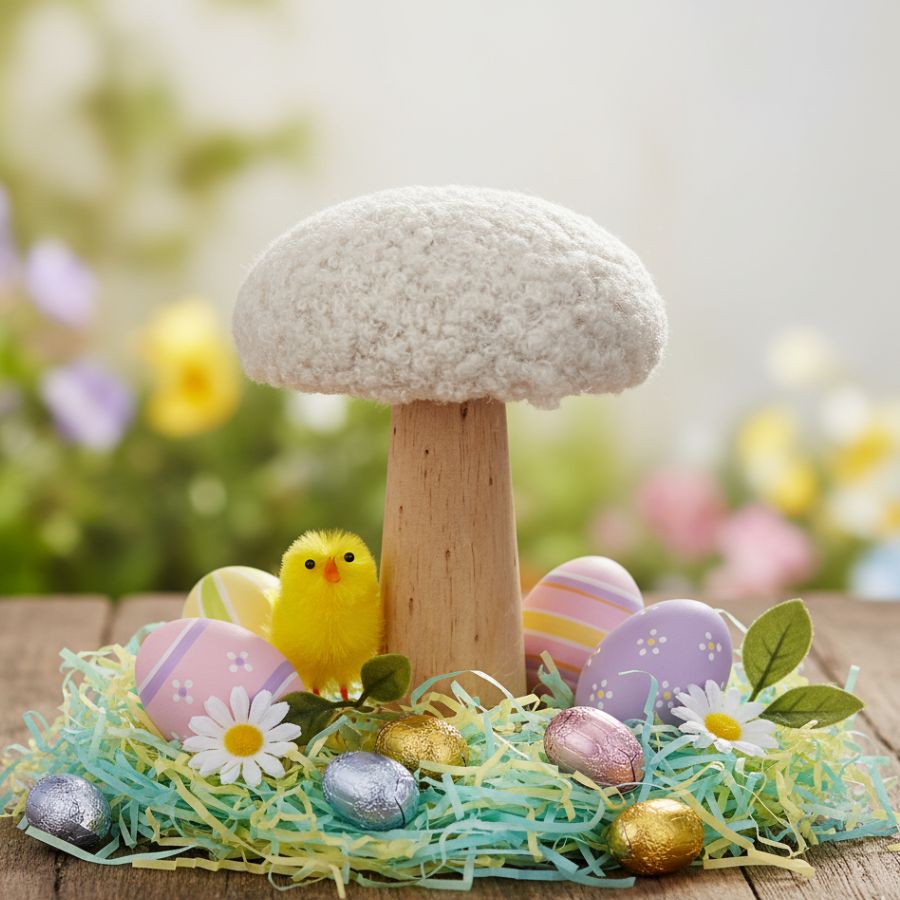 O Enfeite Decorativo de Páscoa Cogumelo Felpudo P Branco é charmoso, delicado e versátil, ideal para enriquecer arranjos e decorações temáticas com estilo e naturalidade.