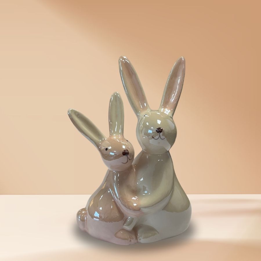 Casal de coelhos de porcelana decorativo