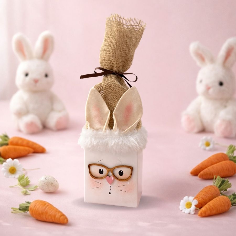 Charmosa e cheia de estilo, a caixa decorativa de coelho é perfeita para quem deseja unir decoração e apresentação de presentes de páscoa, criando um visual delicado, divertido e inesquecível. A caixa decorativa com orelhinhas de coelho é ideal para montar lembrancinhas, cestas e presentes de páscoa, além de decorar mesas temáticas e vitrines com charme, criatividade e espírito festivo.