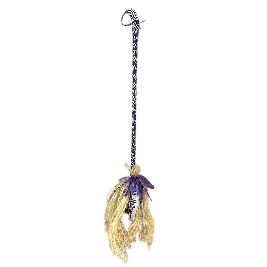 Enfeite Decorativo Halloween - Vassoura Roxa, um acessório encantador para adicionar um toque mágico e temático à sua decoração de Halloween.