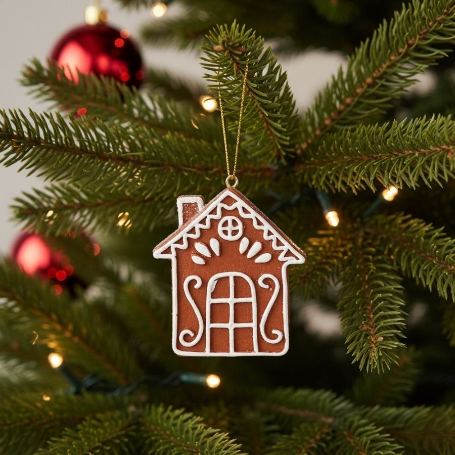 Com design em formato de casa de Ginger Bread, este enfeite pendente é ideal para artesãos, lojistas e produtores que desejam agregar charme e sofisticação às suas criações natalinas. Pode ser combinado com outros enfeites, fitas, laços ou luzes de LED, criando um efeito visual harmonioso e delicado em árvores de Natal, centros de mesa ou displays festivos.