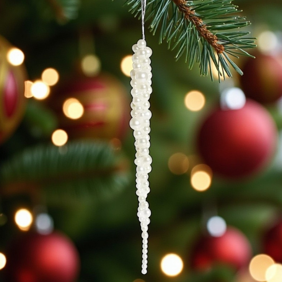 Enfeite para pendurar em árvore ou decoração de Natal, no formato de cordão com pérolas brancas. Mede 23,5x2cm, é leve, resistente e fácil de aplicar, ideal para criar efeitos sutis, elegantes e sofisticados em ambientes internos.