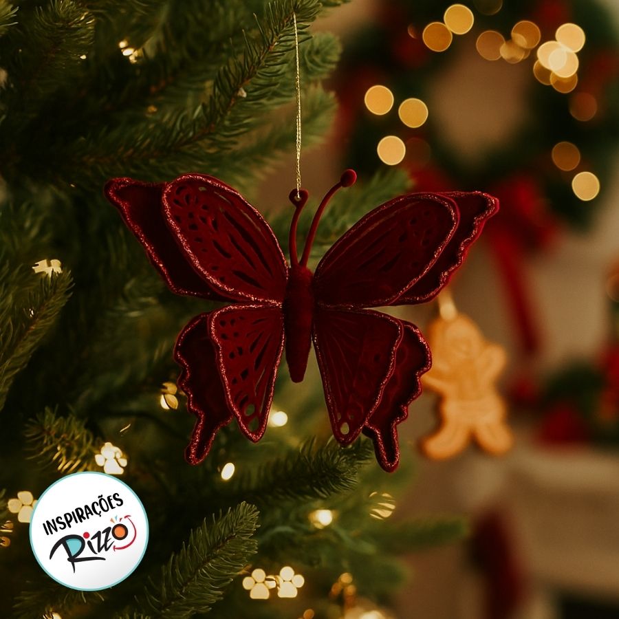 O Enfeite Para Pendurar de Natal Borboleta Glitter Vinho de 14x12x6cm é resistente, elegante e ideal para decorações natalinas sofisticadas, delicadas e cheias de brilho.