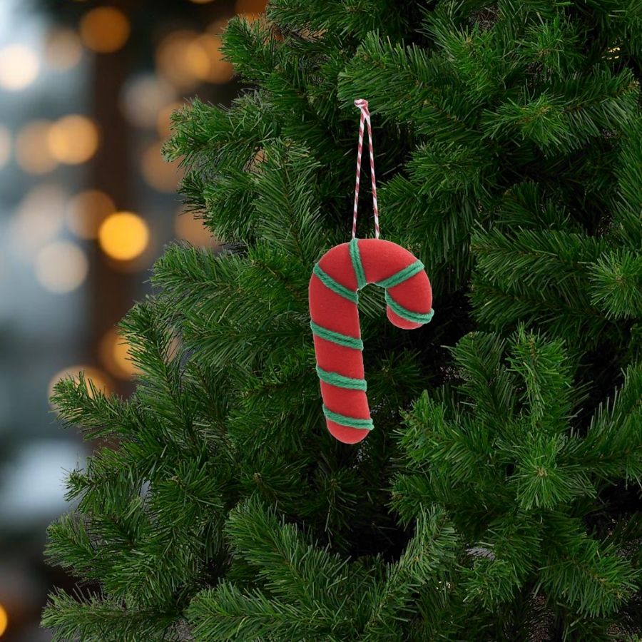 O Enfeite Para Pendurar De Natal - Candy Cane mede 11cm e é confeccionado em poliéster, nas cores verde e vermelho. Este enfeite em formato de bengala natalina é perfeito para complementar árvores de Natal, guirlandas e arranjos festivos, trazendo um toque clássico e divertido à decoração.