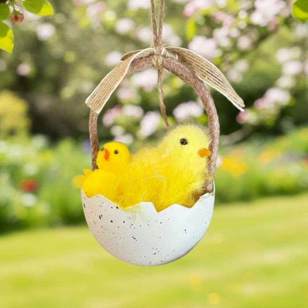 O Enfeite Para Pendurar de Páscoa em formato de ovinho quebrado é uma peça delicada e cheia de encanto. Ele representa meia casca de ovo, com 2 pintinhos amarelos acomodados em seu interior, criando um visual fofo e lúdico que remete diretamente ao clima da Páscoa. Um item perfeito para trazer alegria e ternura à decoração.