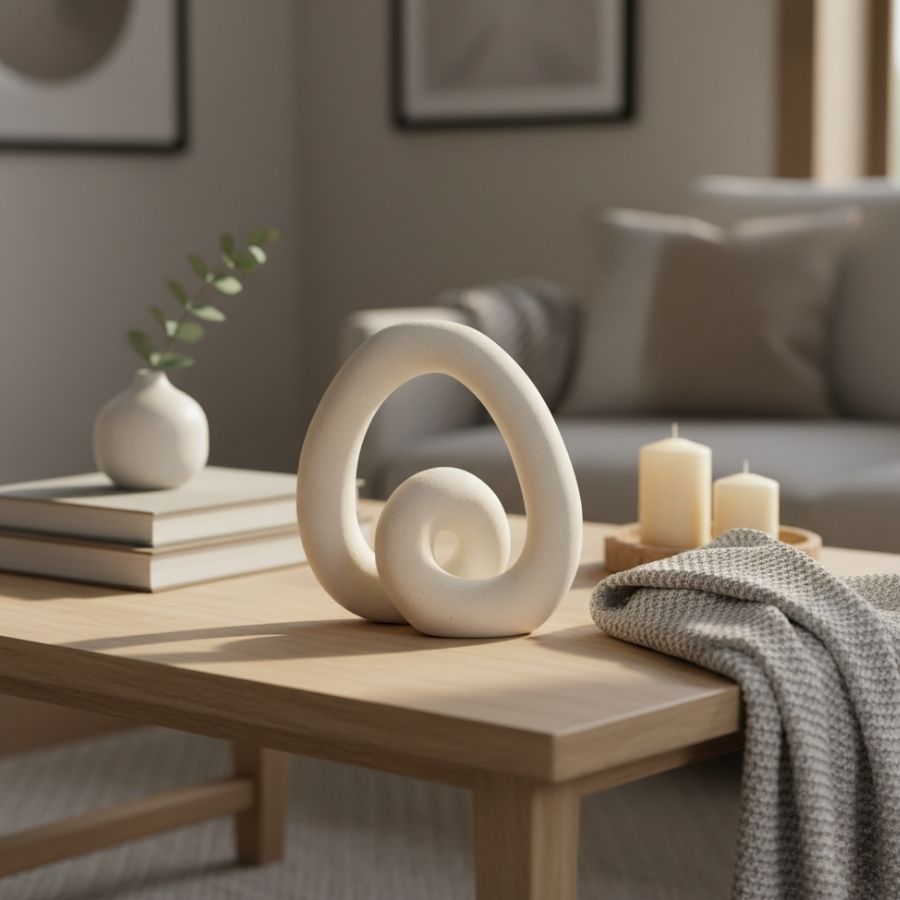 Escultura de cerâmica com formato de nó ou laço, ideal para decorar ambientes com estilo moderno e sofisticado no Home Decor.