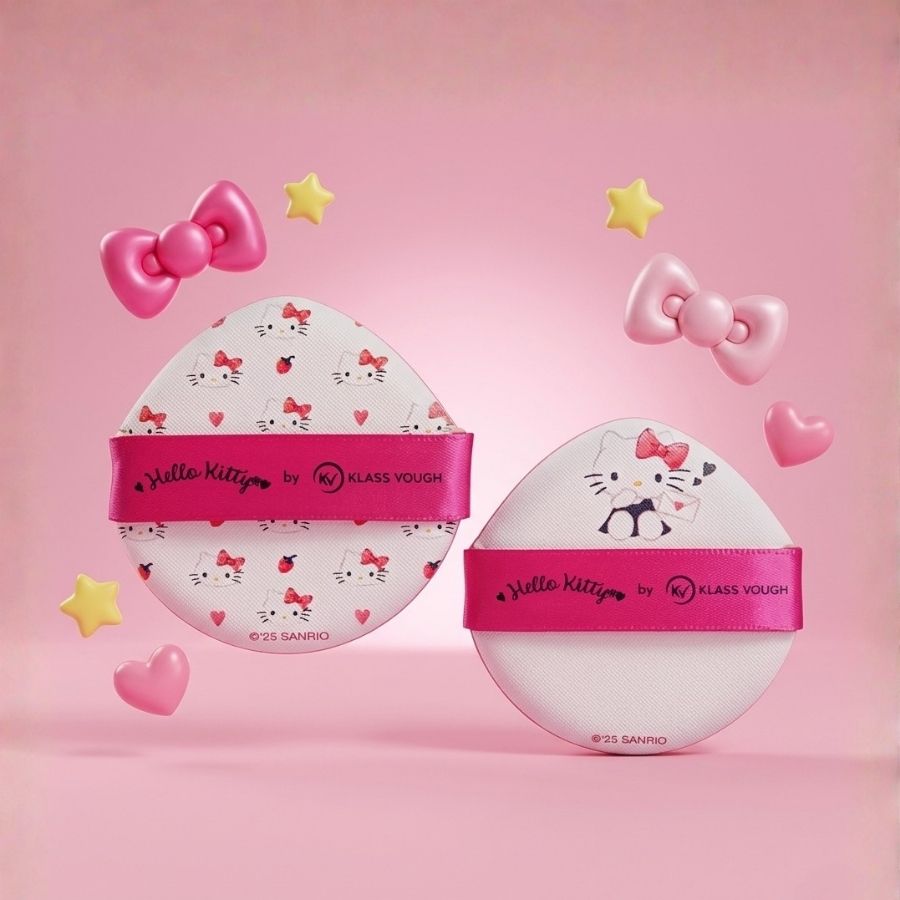 Esponja de maquiagem Hello Kitty com tecnologia air cushion, conjunto com duas unidades em material Rubycell, ideal para aplicar base, corretivo e produtos cremosos com acabamento uniforme e profissional.