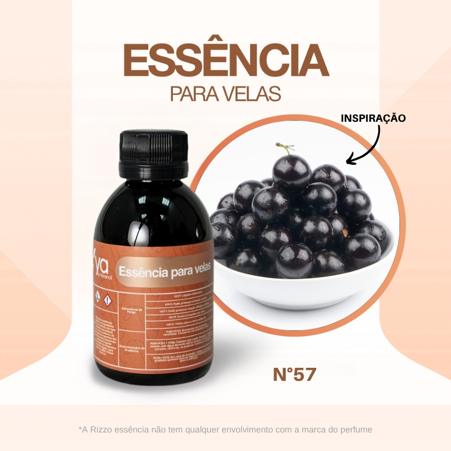 A Essência Vela Jabuticaba N°57 é ideal para quem busca uma fragrância marcante e envolvente na produção de velas artesanais. Com 100g de conteúdo, essa essência é perfeita para uso em velas aromáticas, proporcionando uma fragrância intensa com notas doces e frescas. Sua família olfativa Frutal Floral oferece uma combinação equilibrada entre o frescor das frutas e a delicadeza das flores, criando uma atmosfera acolhedora e sofisticada. A aplicação é fácil e sua alta fixação garante que a fragrância se mantenha por muito mais tempo no ambiente.