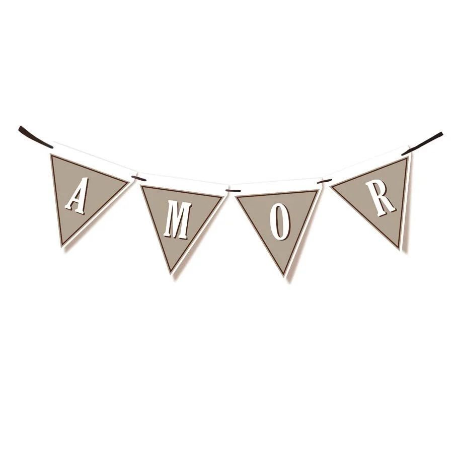 A Faixa Decorativa Bandeirola de Papel Casamento Rústico Amor é o detalhe ideal para deixar sua festa ainda mais charmosa e acolhedora. O kit vem com 3 bandeirolas brancas em papel cartão resistente, decoradas com delicados detalhes em verde e marrom, que juntas soletram a palavra “Amor”. A faixa é composta por uma fita de cetim marrom com 1,4m de comprimento, perfeita para decorar mesas de doces, paredes, entradas ou painéis fotográficos.