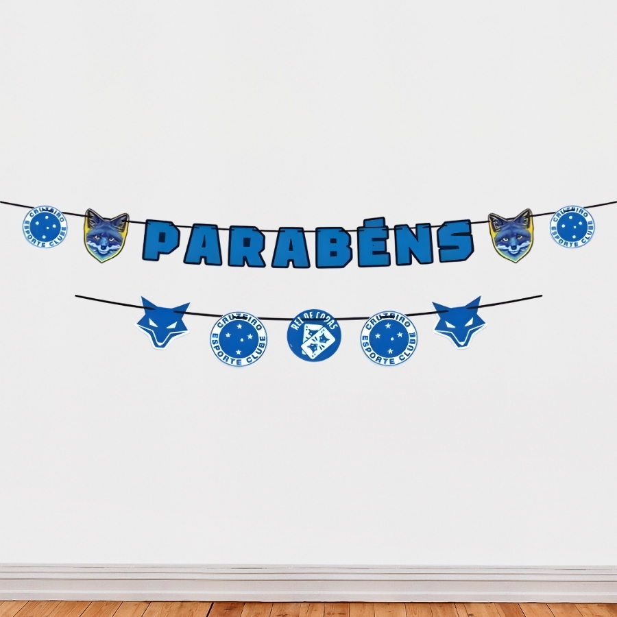 Indicada para aniversários, eventos esportivos, confraternizações entre torcedores e festas temáticas, a faixa é perfeita para quem busca praticidade e impacto visual. Ela valoriza painéis, entradas, mesas principais e áreas fotográficas, proporcionando um acabamento profissional sem exigir esforço. Seu design temático do Cruzeiro garante uma decoração coerente e envolvente, ideal para criar um ambiente memorável para os fãs do time.