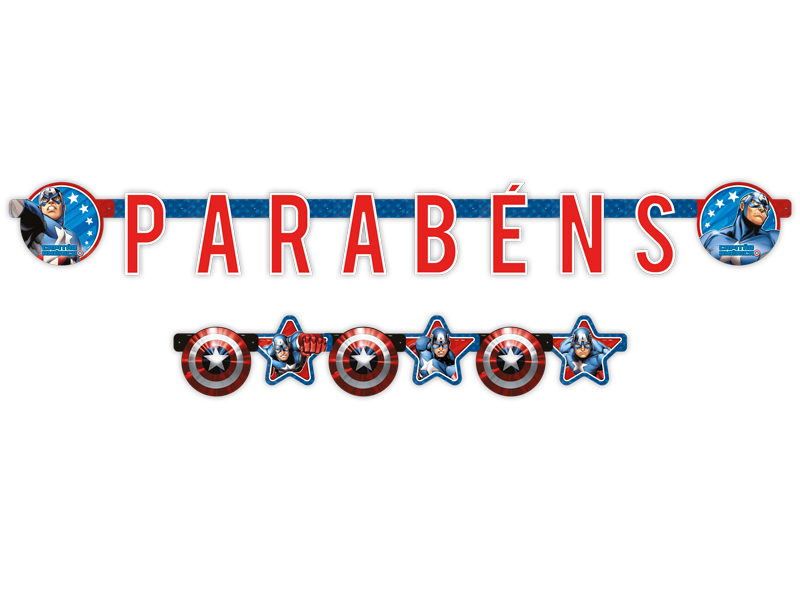 Faixa decorativa com a estampa do Capitão América, ideal para festas de aniversário e eventos temáticos.