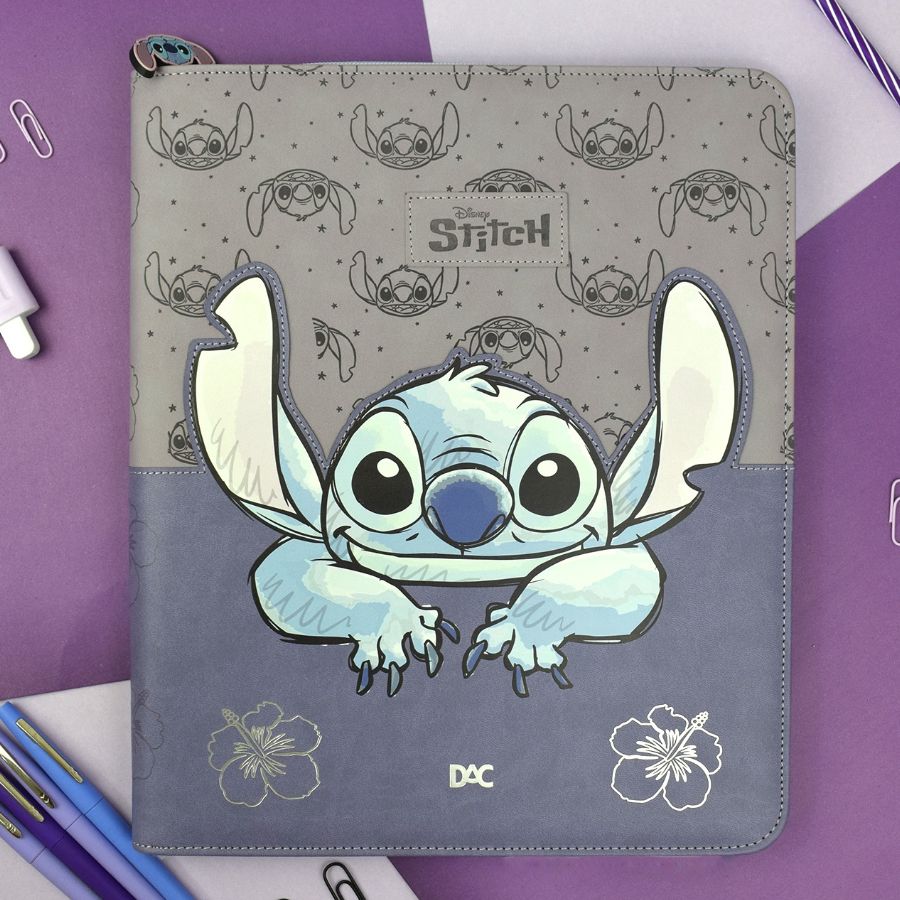 Fichário escolar inspirado em Stitch Disney. Produto licenciado.