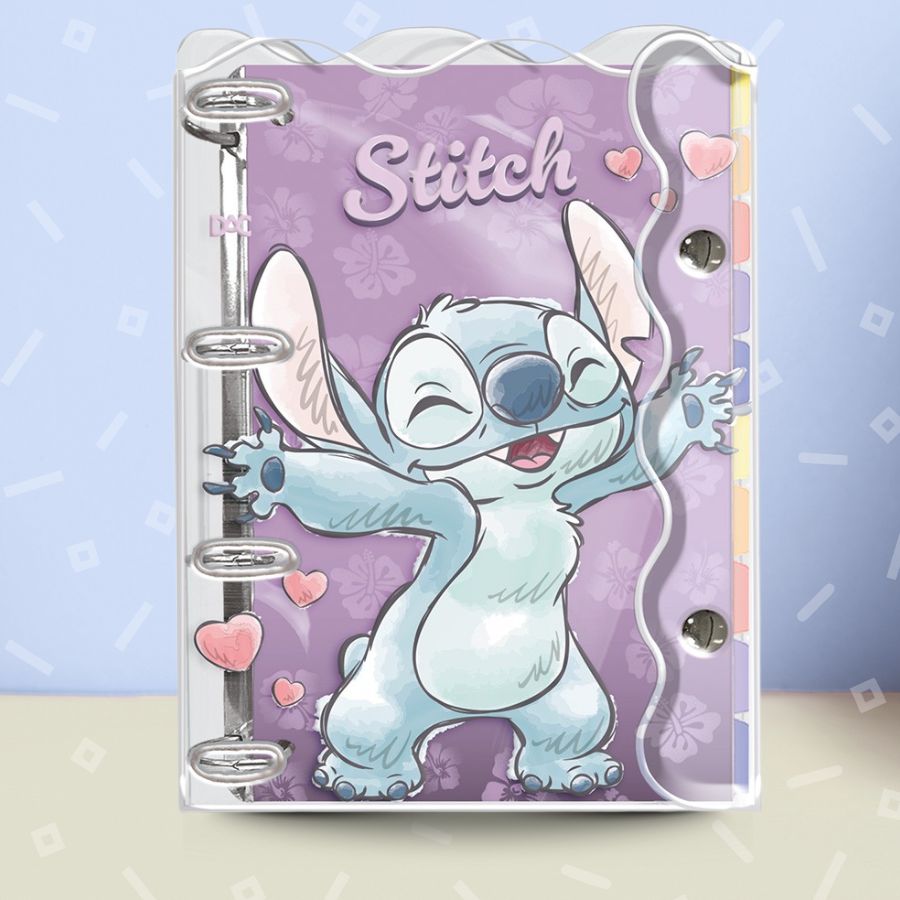 Fichario com capa pvc cristal inspirado em Stitch Disney.