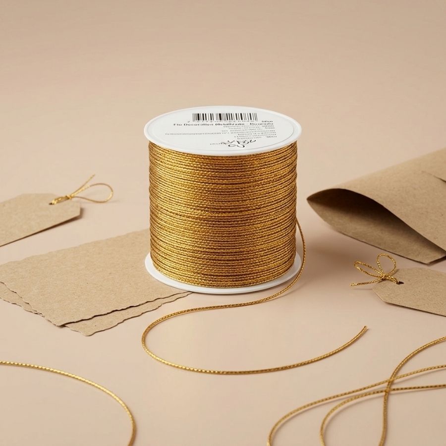 Fio decorativo metalizado dourado com 50 metros, ideal para artesanato, decoração de embalagens, presentes e lembrancinhas.