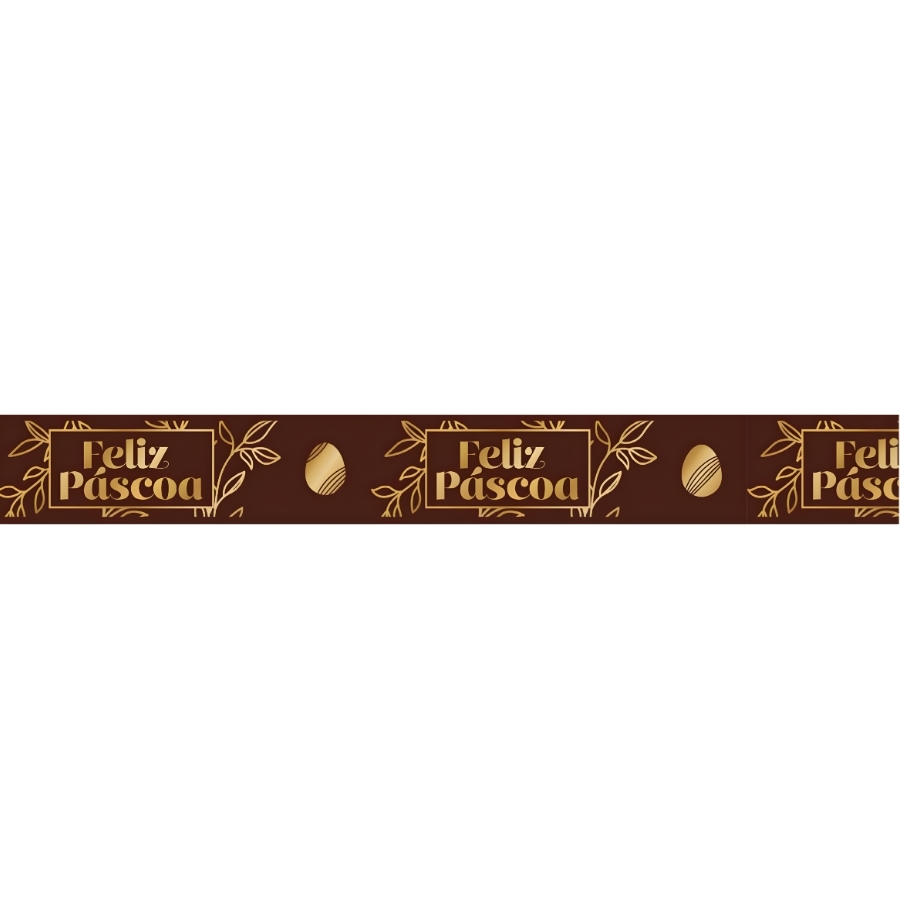 Essa fita resolve a necessidade de comunicar a temática da Páscoa de forma clara e atrativa, ao mesmo tempo em que aumenta a percepção de qualidade do produto final. A estampa Feliz Páscoa em dourado reforça a mensagem festiva, chama a atenção no ponto de venda e contribui para embalagens mais profissionais e valorizadas, sem exigir complementos adicionais.