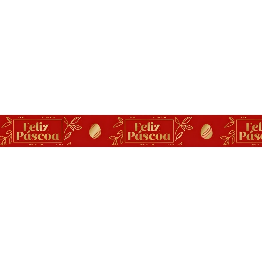 Fita de Cetim 22mm x 10m - Feliz Páscoa Gold Vermelho - ECF005H Cor 1109 - Rolo 10m - 1 unidade - Fitas Progresso - Rizz