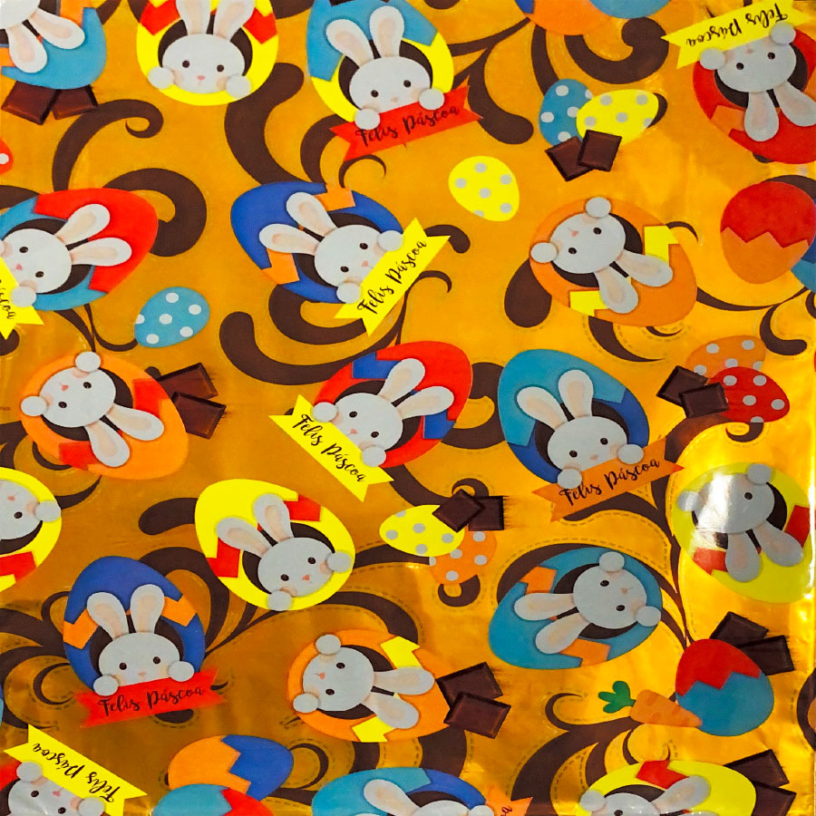 Folha para Embrulhar Ovos de pascoa decorada com o tema Chocovo na cor amarela