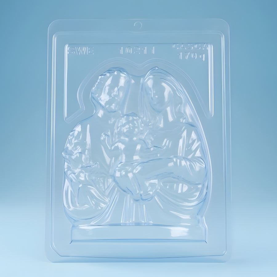 A Forma de Acetato Especial – Sagrada Família é ideal para criar peças de confeitaria com um significado especial e visual marcante. Inspirada na representação da Sagrada Família, ela permite produzir chocolates e outras criações com um design temático que remete ao espírito natalino e às tradições dessa data comemorativa.