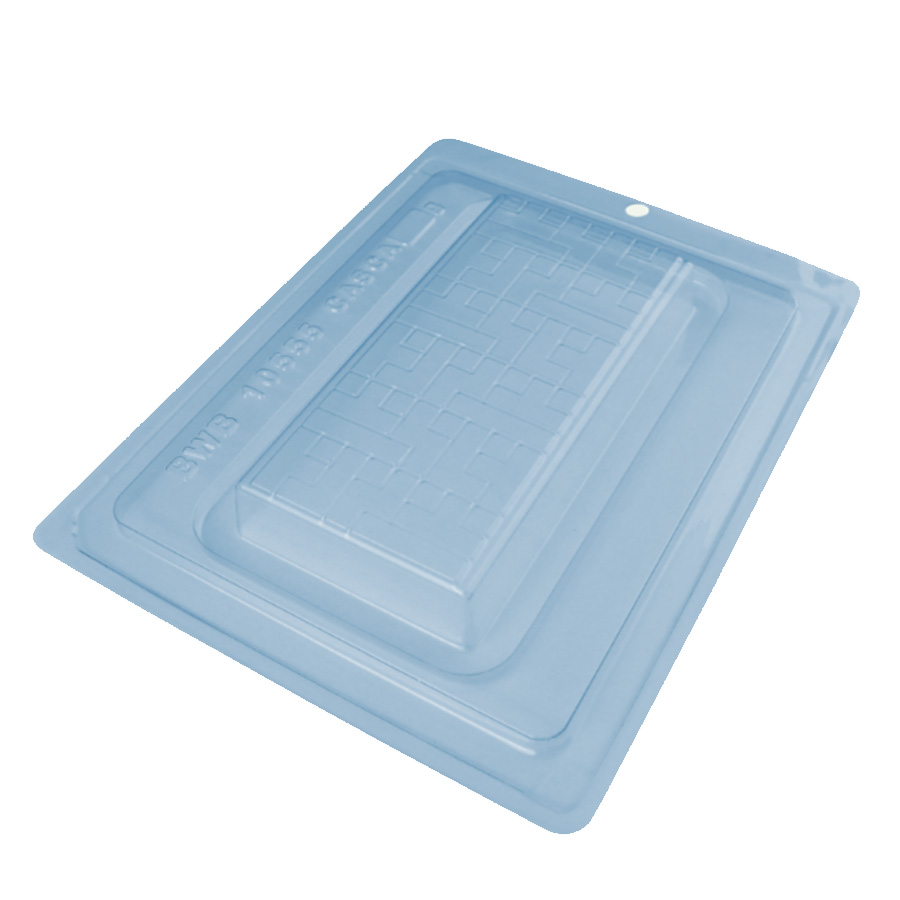 Forma com 1 cavidade, Material: Acetato, Composição: Pet, Produto Atoxico, Dimensões Cavidade: 16 x 8,5 x 2, Reutilizavel, Peso da casca: 50g, Quantidade: 3 partes (2 rigidos, 1 silicone)