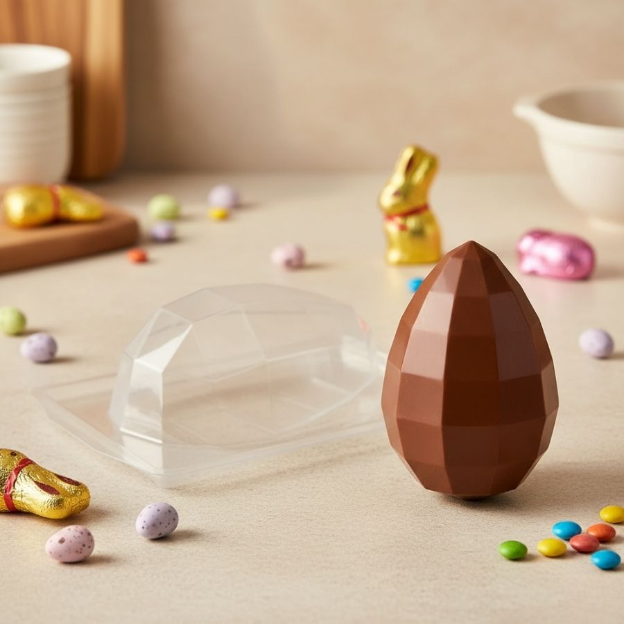 A Forma Especial de Acetato Ovo Diamante 500g Cód FP166 é resistente, prática e ideal para produzir chocolates com acabamento profissional e criativo.