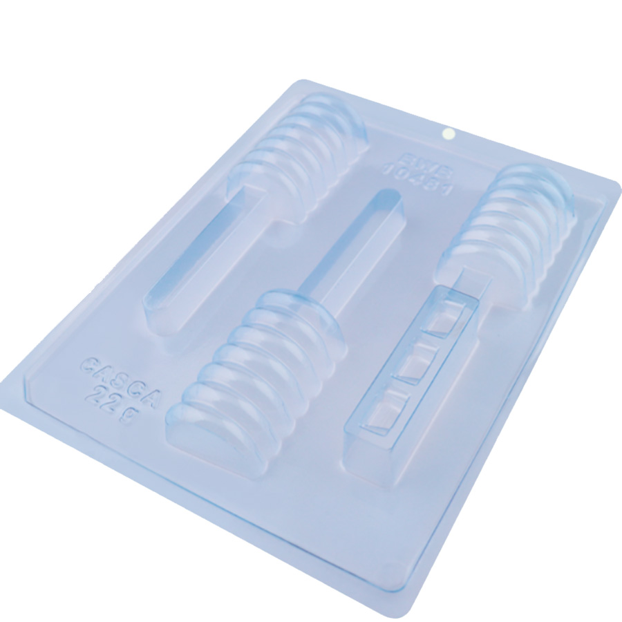 Forma com 3 cavidade, Material: Acetato, Composição: Pet, Produto Atoxico, Dimensões Cavidade: 16 x 4,5 x 5, Reutilizavel, Peso da casca: 22g, Quantidade: 3 partes (2 rigidos, 1 silicone)