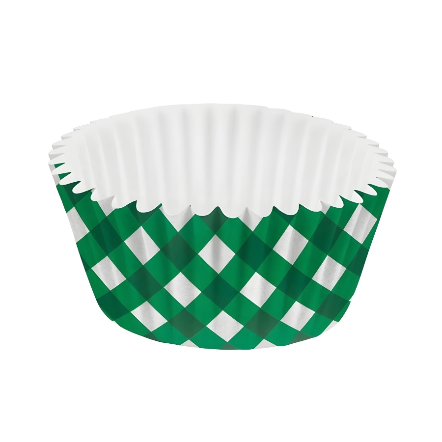 Forminha para doces com temática Verde Arraiá, no tamanho número 05, com dimensões aproximadas de 3x1,5x3cm. Indicada para acomodar doces individuais em festas juninas e eventos temáticos. Produto destinado à apresentação e organização de doces. Recomenda-se utilizar em superfícies limpas e secas e evitar contato com umidade excessiva para preservar o material.