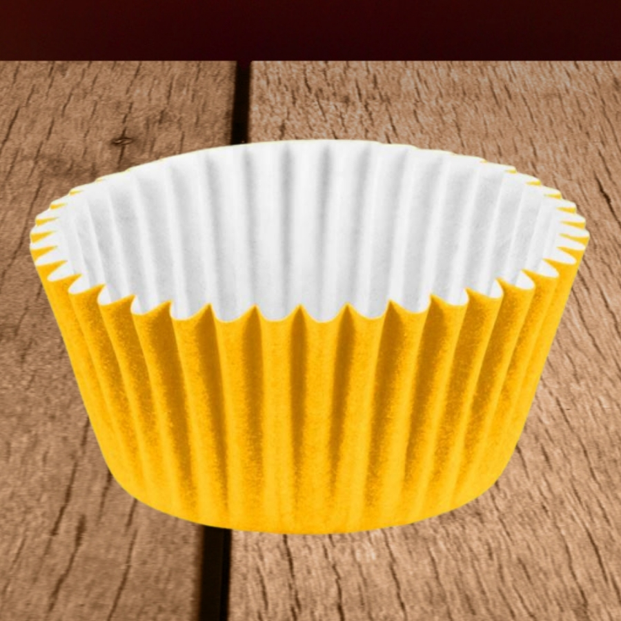 A forminha para doces nº 05 possui cor amarela e dimensões aproximadas de 2x1,5cm. É indicada para a acomodação e apresentação de pequenos doces, auxiliando na organização, padronização e valorização estética das produções de confeitaria.