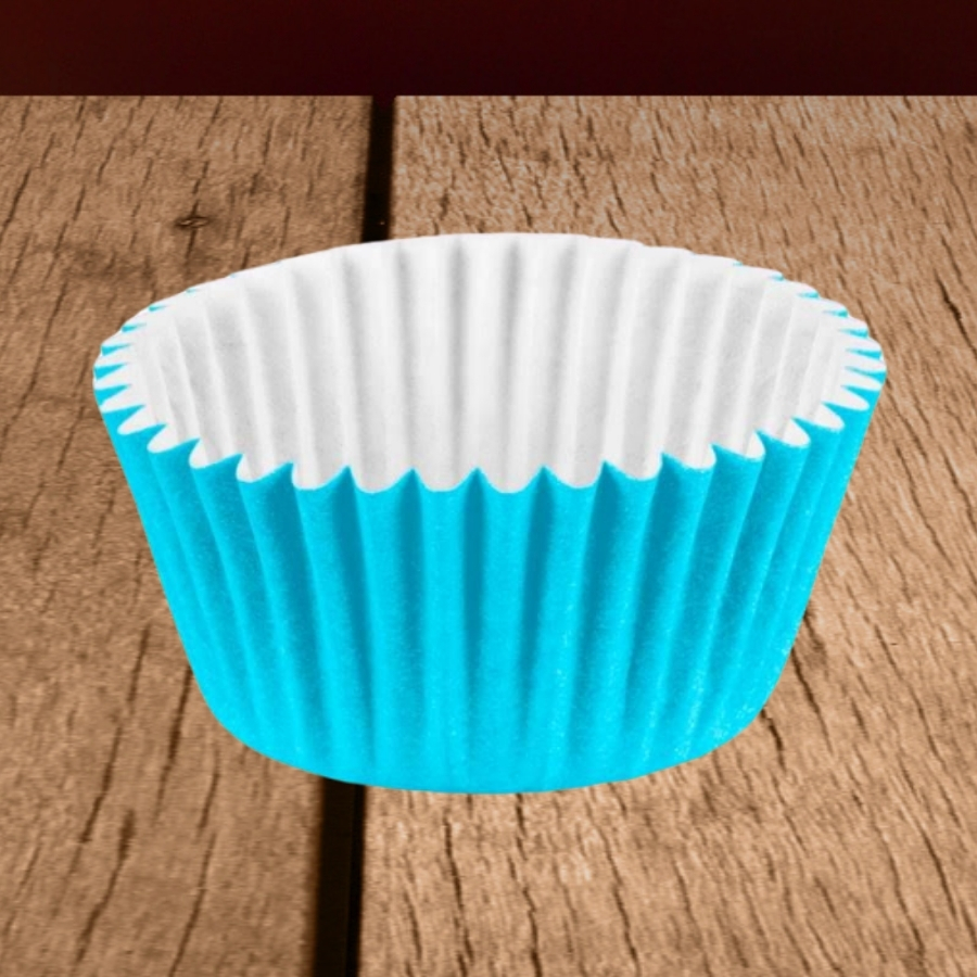 A forminha para doces nº 05 possui cor azul bebê e dimensões aproximadas de 2x1,5cm. É indicada para a acomodação e apresentação de pequenos doces, auxiliando na organização, padronização e valorização estética das produções de confeitaria.