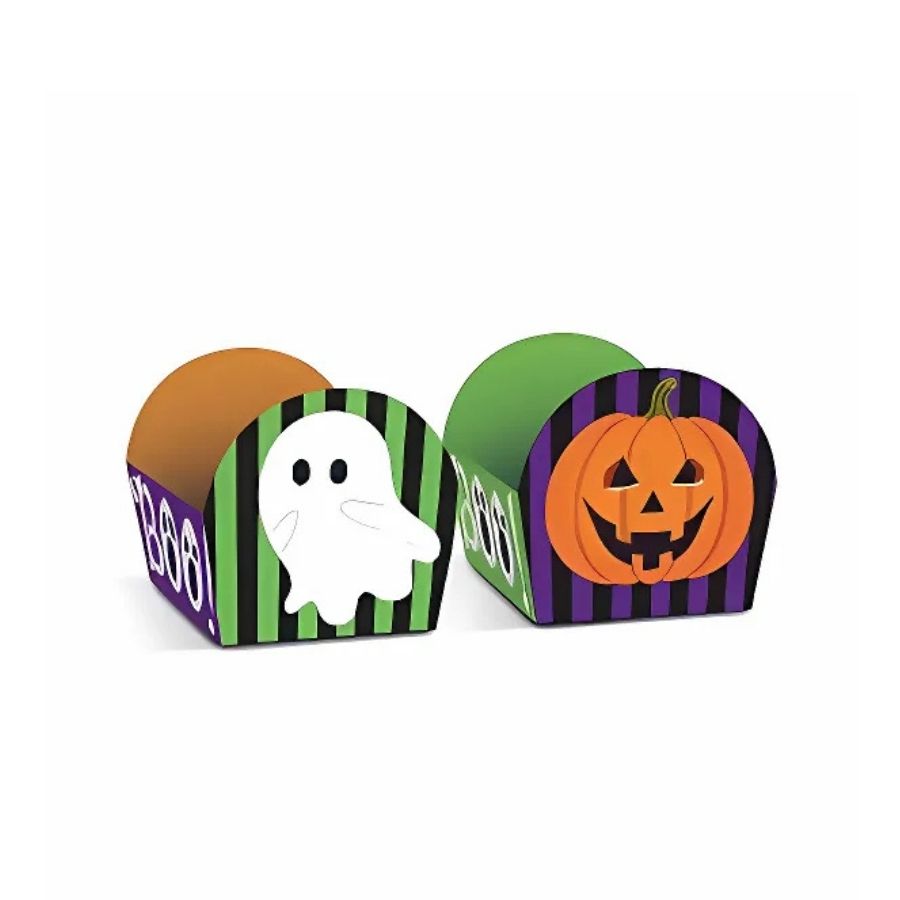A Forminha para Doces - Fantasma e Abóbora de 3,4x3cm é ideal para festas de Halloween, adicionando um toque temático e divertido à apresentação de pequenos doces. Com design de fantasma e abóbora, são práticas e complementam a decoração da mesa.