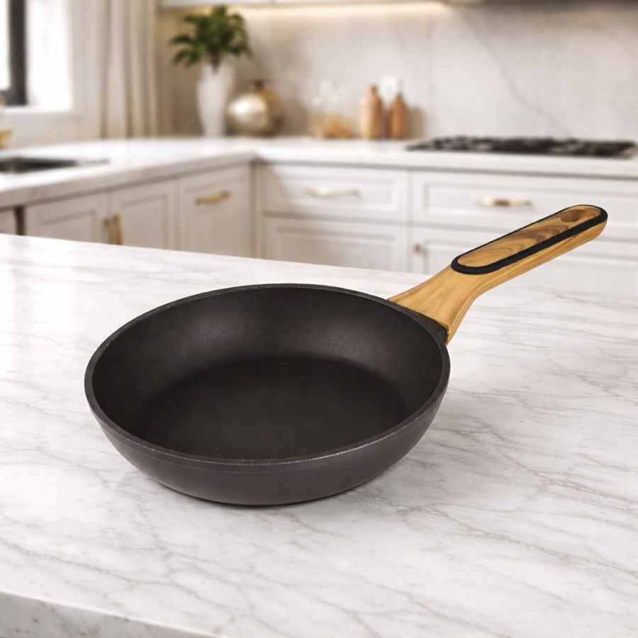 Fabricada em alumínio forjado de 2,5 mm, a frigideira oferece alta resistência e excelente distribuição de calor. Possui revestimento antiaderente Dyflon 3D atóxico, que facilita o preparo dos alimentos e torna a limpeza mais prática. O cabo de baquelite com acabamento soft touch conta com detalhe antiderrapante, garantindo segurança e conforto durante o uso. Com capacidade de 1,5 litros, é ideal para grelhados, refogados e salteados rápidos. Versátil, é compatível com todos os tipos de fogão, incluindo gás, elétrico, vitrocerâmico, halógeno e indução. Leve, prática e resistente, a frigideira alia funcionalidade e design, tornando-se também um elemento de destaque no home decor da cozinha.