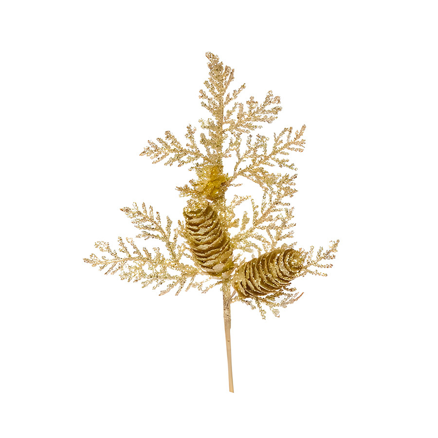 O Galho com Folhas e Pinhas Ouro de 25cm é a peça ideal para dar um toque sofisticado e dourado à sua decoração natalina. Com folhas detalhadas e pinhas brilhantes, ele acrescenta um charme natural e um brilho elegante aos arranjos de Natal.