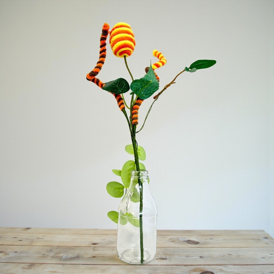 O Galho Decorativo de Páscoa mede 39cm, apresentando galho com acabamento detalhado e ovos coloridos em tons de amarelo, laranja e marrom. Fabricado com materiais leves e resistentes, é fácil de posicionar em vasos ou arranjos, tornando-se uma peça prática, durável e charmosa para decoração temática.