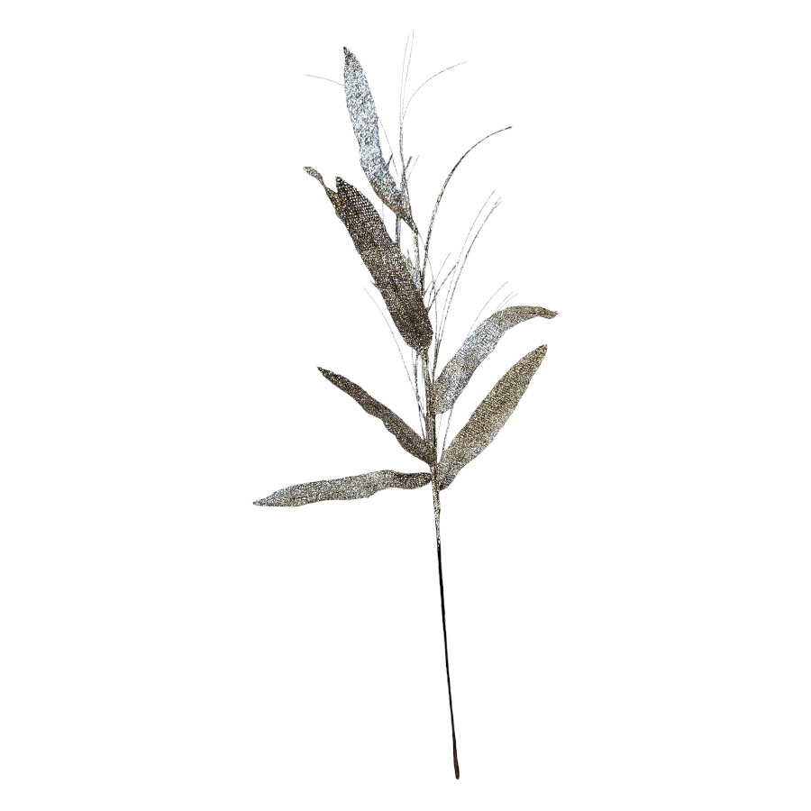 Galho decorativo com folhas douradas glitter