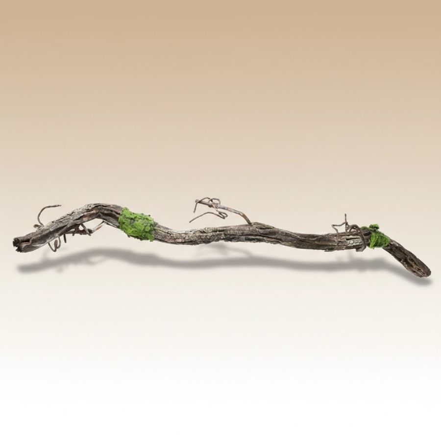 Galho decorativo longo com musgo, realista e versátil, ideal para arranjos, cenários e decorações temáticas com estética natural.