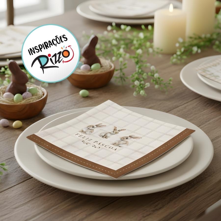 Indicado para encontros familiares, eventos de Páscoa e comemorações temáticas, este guardanapo resolve a necessidade de unir funcionalidade e decoração. O tamanho de 32,5x32,5cm oferece boa cobertura e praticidade no uso, contribuindo para uma mesa organizada e visualmente atrativa.