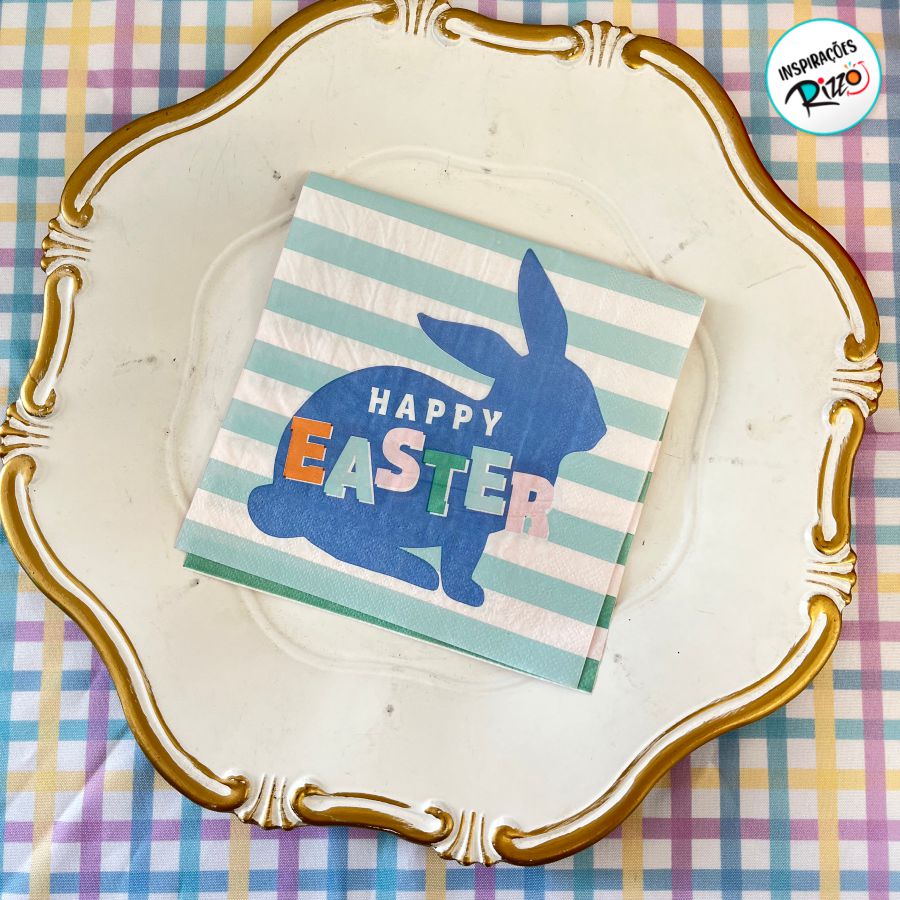 O Guardanapo Temático Páscoa - Happy Easter - 32x35cm é uma opção encantadora para celebrar a Páscoa, trazendo a mensagem alegre "Happy Easter" para a sua mesa festiva.