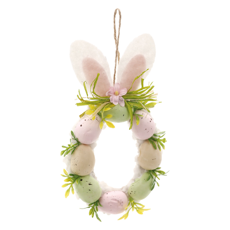 Guirlanda decorativa para páscoa com orelhas de coelho e ovinhos em volta