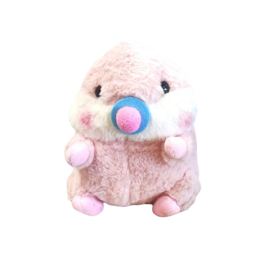 Hamster de pelúcia rosa com toque macio, leve e seguro, ideal para decoração e presente infantil.