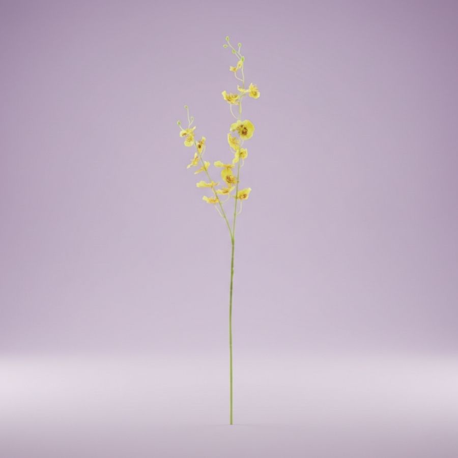 Haste permanente de Orquídea Dançante amarela (Chuva de Ouro), ideal para decoração sofisticada, arranjos marcantes e composições florais elegantes.