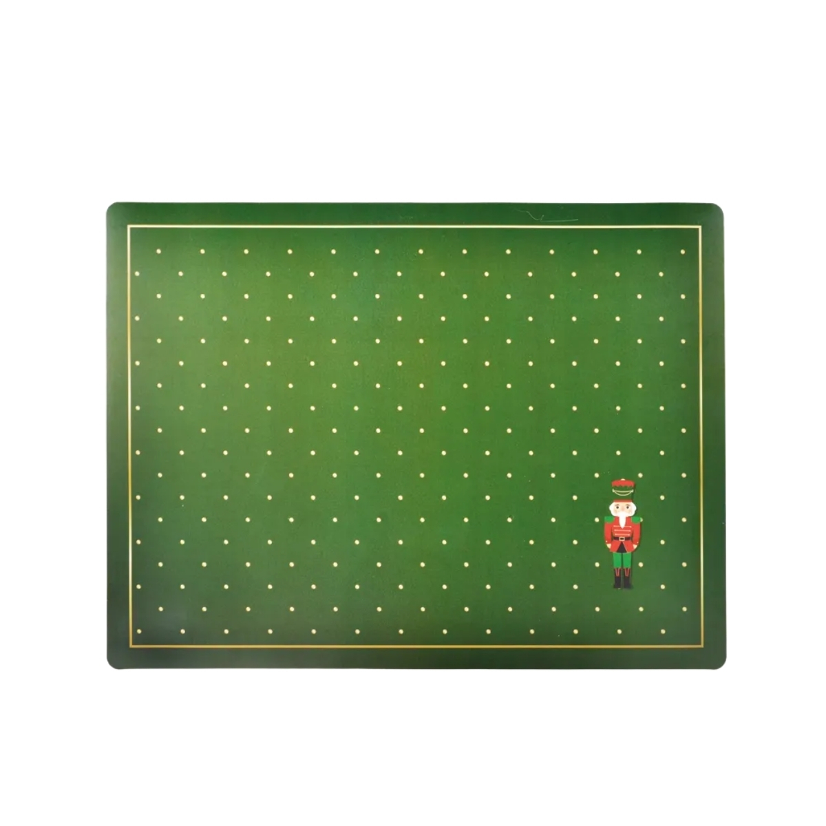 O Jogo Americano de Natal - Soldado Chumbo com Poá - 45x33cm é um item elegante que combina praticidade e charme para a sua mesa durante as festividades. Com estampa de soldado de chumbo e detalhes em poá, traz um toque clássico e sofisticado à decoração natalina, destacando-se em jantares, almoços ou ceias de Natal.