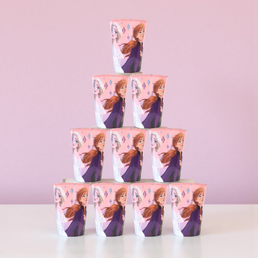 O Kit 10 Copos para Lembrancinha - Frozen - 320ml é uma opção encantadora para compor lembranças criativas e cheias de identidade visual. Inspirado no universo de Frozen, o conjunto é ideal para festas infantis e eventos temáticos, contribuindo para uma apresentação delicada e divertida. Produzidos em plástico livre de BPA, os copos são perfeitos para integrar kits personalizados, podendo ser combinados com doces, balas, mini brinquedos ou itens de papelaria. O visual temático ajuda a reforçar o clima da festa, transformando a lembrancinha em um detalhe especial da comemoração. A capacidade de 320ml é prática para diferentes propostas de montagem.