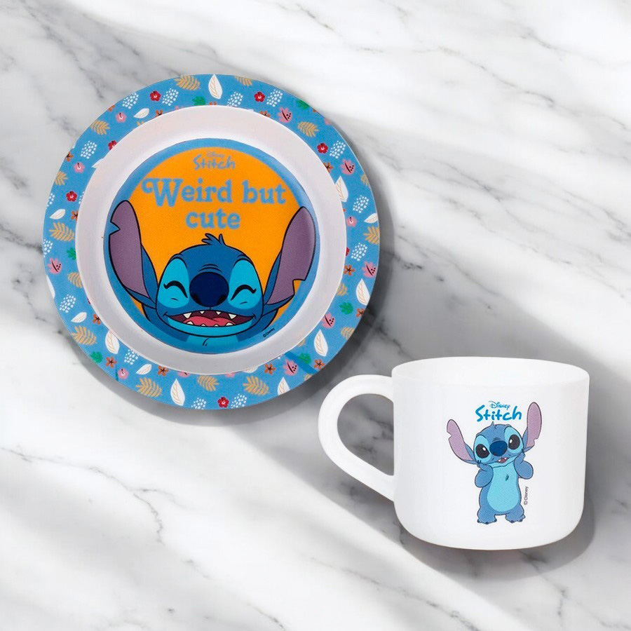Este kit de alimentação infantil é perfeito para tornar as refeições mais divertidas e encantadoras! Composto por uma caneca branca decorada dos dois lados com o adorável Stitch e um prato bowl também decorado, é ideal para crianças a partir de 6 meses.
