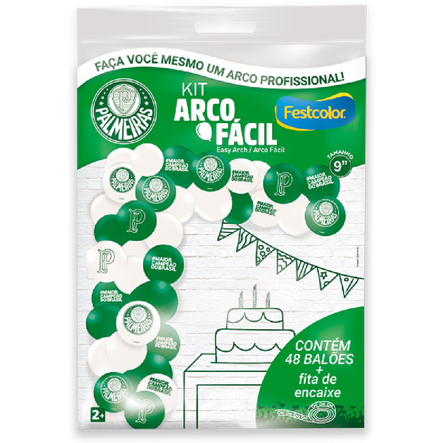 Um pacote contendo 1 kit com: uma fita para arco desconstruido e 48 balões com o tema Palmeiras