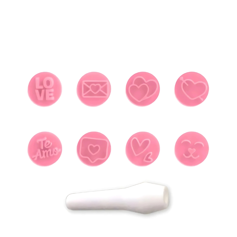 O encantador Kit de Carimbos Amor, uma adição romântica e inspiradora para sua jornada culinária. Com uma variedade de designs delicados de corações, este conjunto permite que você adicione um toque de amor e carinho aos seus pratos e sobremesas.
