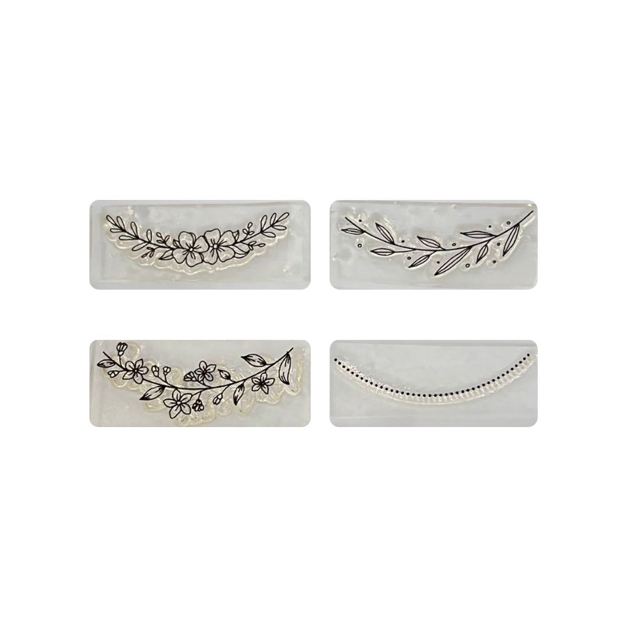 O Kit Cartela de Carimbos - Molduras Florais M traz elegância e delicadeza para os seus projetos de artesanato e confeitaria. Produzidos com material resistente e gravação precisa, os carimbos oferecem estampas nítidas e detalhadas, ideais para quem busca um acabamento refinado e artístico. Cada moldura floral foi desenhada para valorizar composições com estilo e sofisticação.