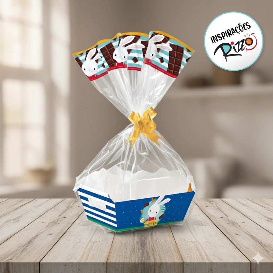A Kit Cesta - Brilho de Páscoa - M é uma embalagem encantadora que combina elegância e um design festivo para deixar qualquer presente ainda mais especial. Com dimensões de 22x15x9cm, ela oferece o espaço ideal para acomodar chocolates, ovos pequenos, bombons, mini pelúcias e outras lembrancinhas temáticas. Seus detalhes que remetem ao brilho e à magia da Páscoa tornam a apresentação mais sofisticada e atraente.