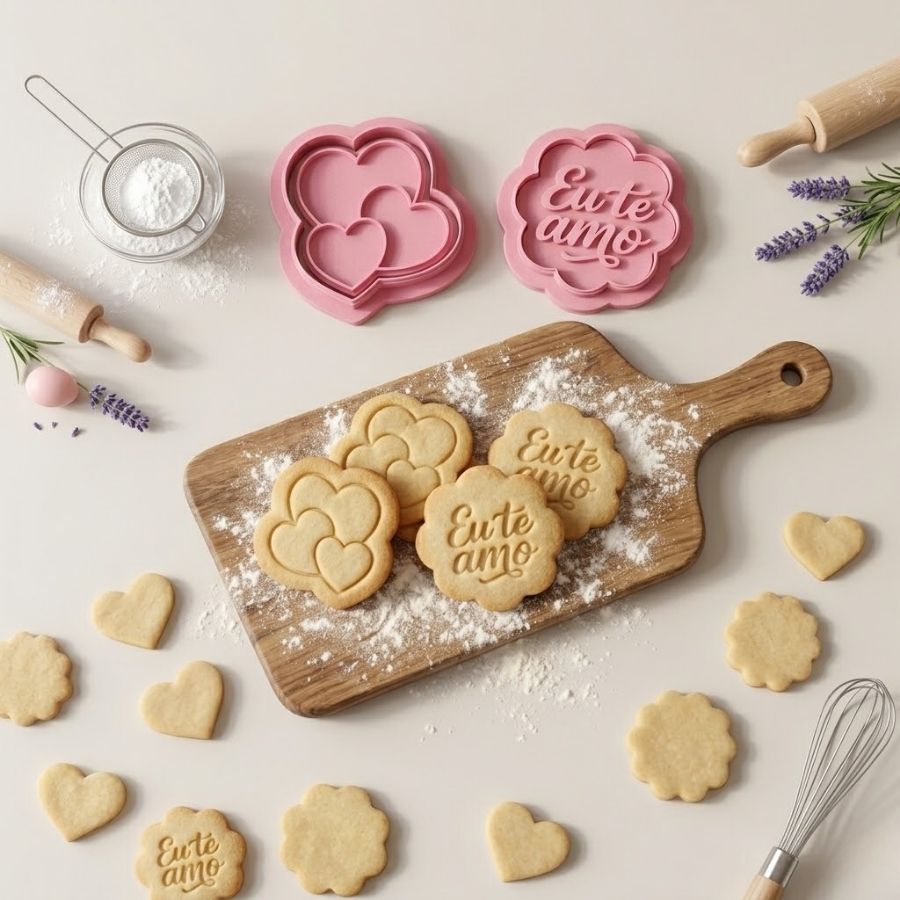 Kit de cortador e carimbo para confeitaria com coração e escrita "Te amo"