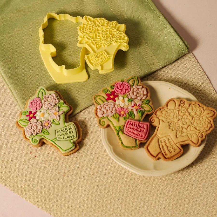 O cortador e carimbo para confeitaria é o aliado perfeito para quem busca praticidade, precisão e acabamento profissional na decoração de doces. Produzido com material resistente e de fácil higienização, ele permite cortar e marcar detalhes com perfeição em massa americana, biscoitos decorados e pasta de açúcar. Ideal para quem deseja elevar o nível das criações, garantindo padronização, riqueza de detalhes e um visual encantador em cada peça.