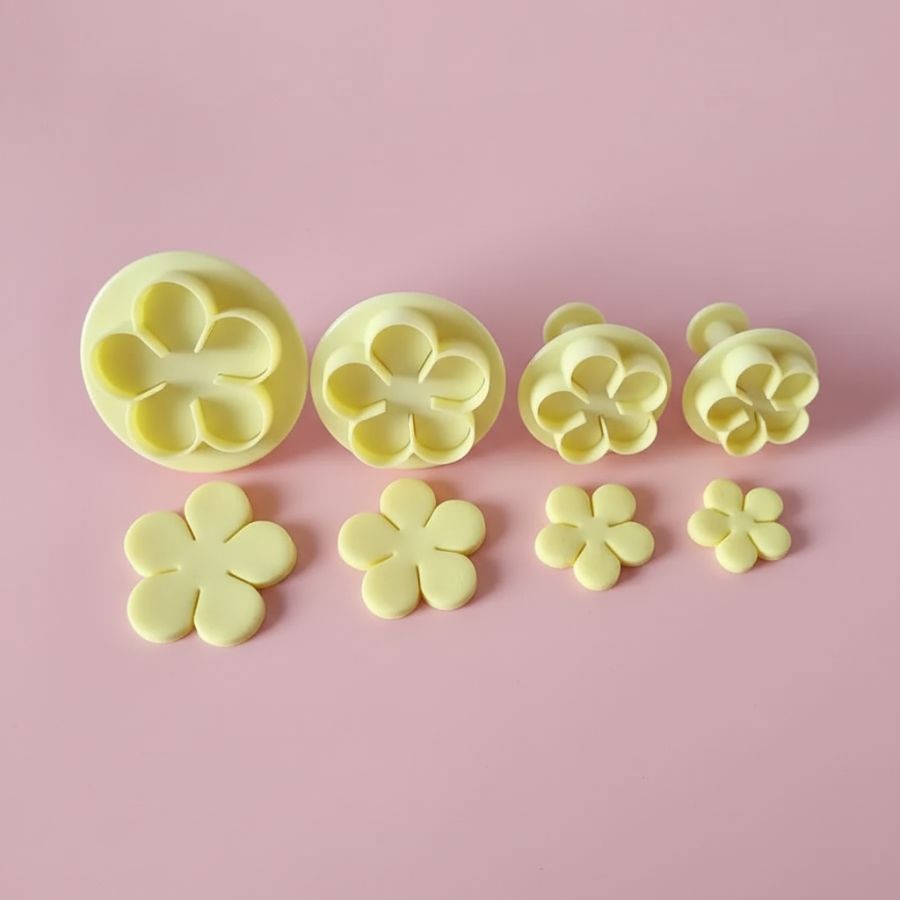 Fabricado em plástico resistente e durável, o kit conta com 4 tamanhos diferentes de flores, variando aproximadamente entre 3,1 cm, 3,5 cm, 4,3 cm e 5,0 cm de diâmetro, proporcionando versatilidade para composições variadas. O uso é simples: basta encaixar o marcador no ejetor, pressionar sobre a massa para cortar e marcar os detalhes e, em seguida, ejetar a peça finalizada com facilidade. O produto é fácil de limpar, mantendo sua durabilidade e eficiência mesmo com uso frequente, sendo ideal para quem busca criatividade, praticidade e acabamento impecável em cada flor produzida.